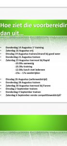 | Op donderdag wordt er de ene week 1 uur getraind en de andere week 1.5 uur. |
